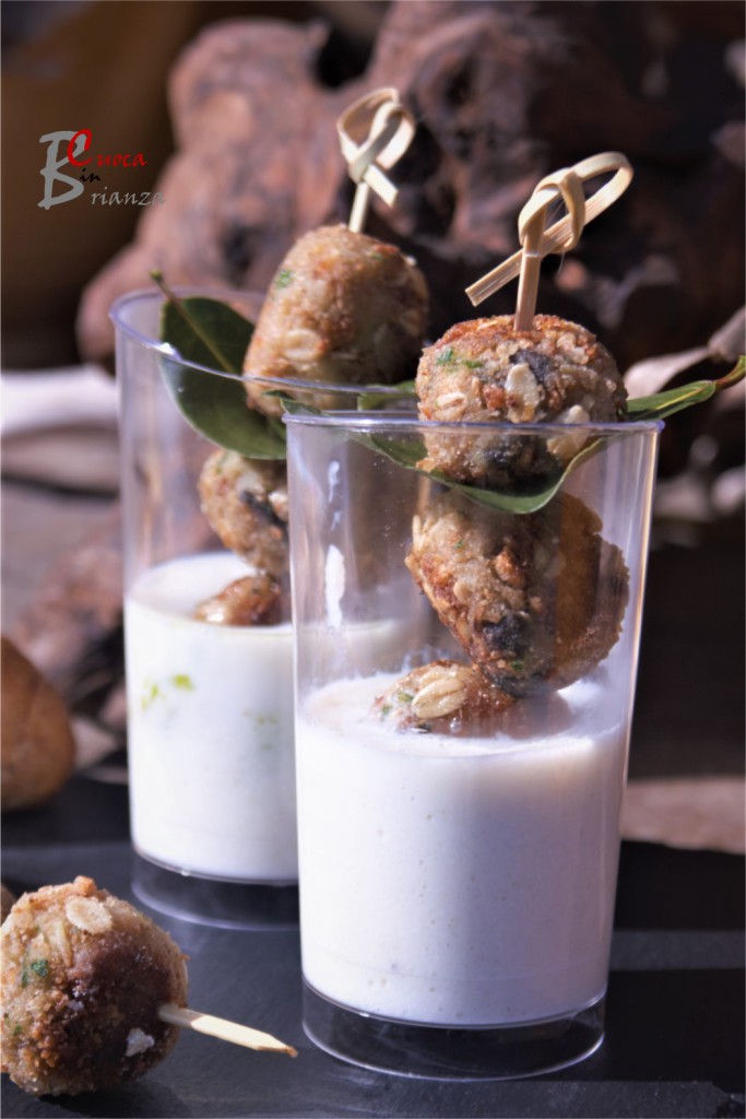 Ho utilizzato queste polpettine come Aperitivo Fingerfood, per realizzare il Bicchierino alla Crema di Topinambur e Spiedino di melanzana e tonno.