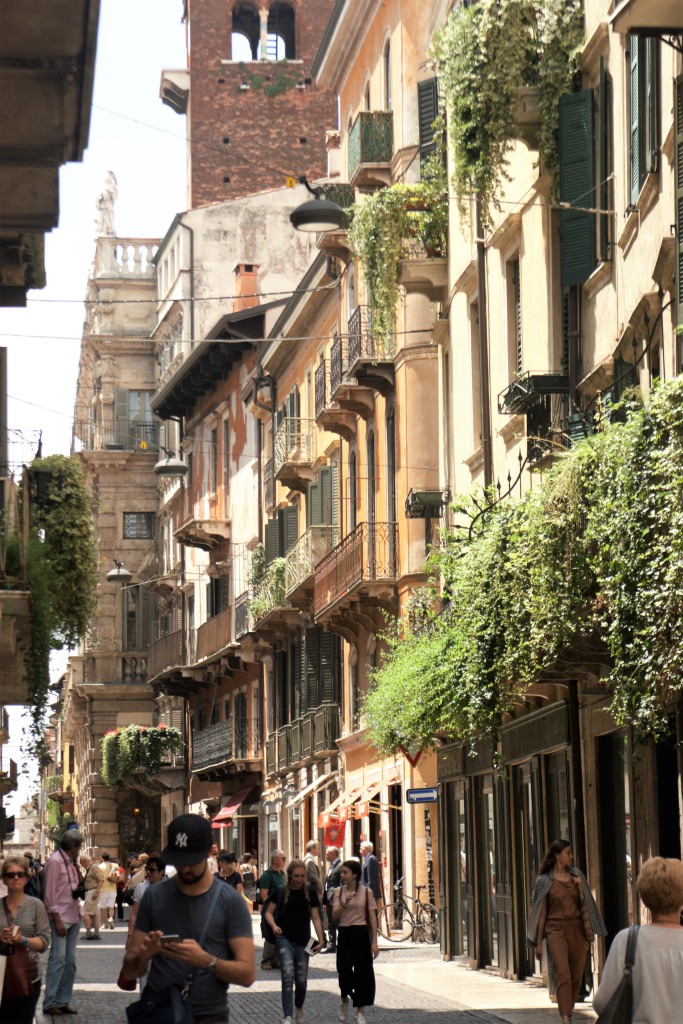 Sono davvero tante, oserei dire quasi tutte, le città italiane che attraggono la mia curiosità, desiderosa di  conoscerle dal vivo, attraverso i loro luoghi simbolo e quelli più discreti, altrettanto suggestivi. Tre giorni veronesi, a spasso per il centro brulicante di turisti, assiepati ai tanti tavolini dei caffè e ristoranti di Piazza Bra, grandiosa ed evocativa, oppure nella vie del centro -per me, milanese, quasi “ristrette”- animate dallo shopping, che conducono alla elegantissima Piazza delle Erbe, in cui i Palazzi storici mantengono alla città un fascino d’antan.